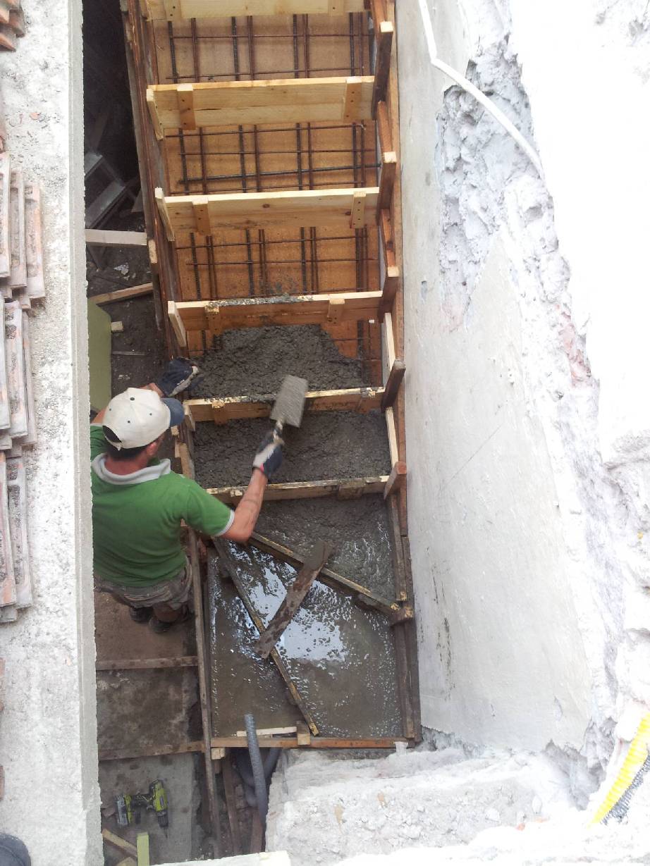 Eines der ersten Vorhaben war das Betonieren der Treppe in das Obergeschoss - damit endlich die Wackelleiter ein Ende hatte.