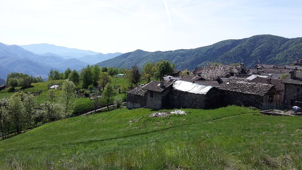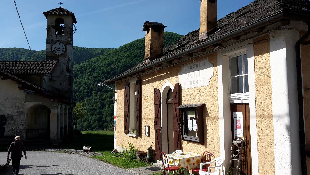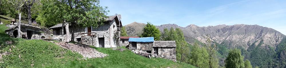 Von Cannobio (200m) ins CannobinoTal und an der ersten Abzweigung rechts gen Gavaglio hoch - dann steil und schmal nach Gurrone, von dort zur Alpe Olzone, mittlerweil 1000m hoch - dann auf Schotterpiste zur Ansiedlung Le Biuse. Weiter bin ich nicht gekommen, da dort der Steinmetz aus Cannobio, Senior Testori das Refugio bewirtet und mich erst mal zu einem Rotwein einlud.